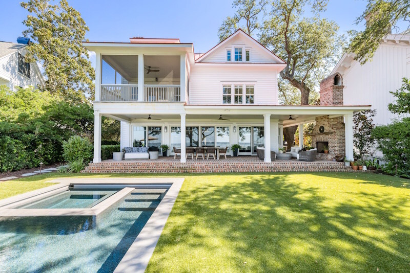 The property offers expansive harbor views stretching from downtown Charleston to Fort Sumter and Sullivan’s Island. Designed for year-round enjoyment, the exterior and grounds feature an infinity pool, outdoor kitchen, masonry fireplace, and a deepwater dock complete with a floating dock and boat lift.