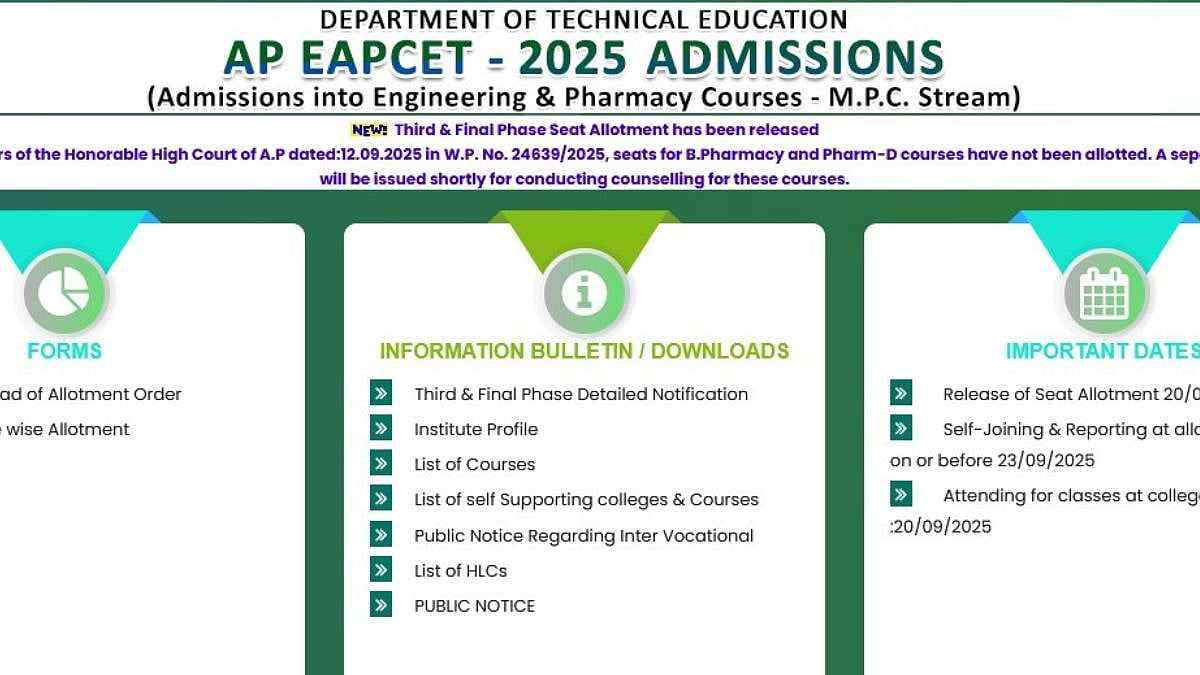 AP EAMCET 2025 Final Phase Seat Allotment Declared; Reporting Begins By September 23